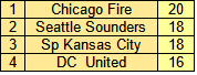 Please note three sides gained points for success in the Open Cup but have not played in the MLS. The Miami Fusion, Rochester Rhinos and the Tampa Bay Mutiny are no longer in existence.